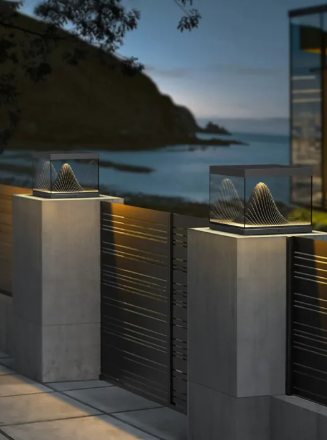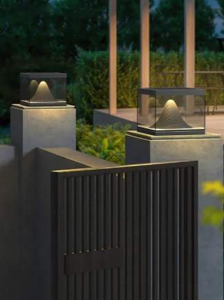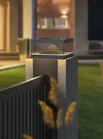 Outdoor Column Head Solar Powered Waterproof Landscape Light Simple Modern Wall Gate Post Lamp for Villa Courtyard